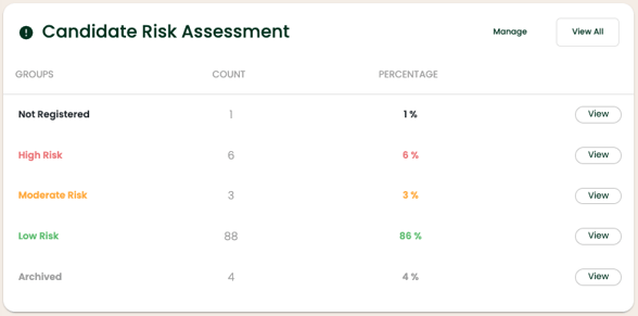 - Moderate Risk - candidates who fall between 33-66% progress in their Journey