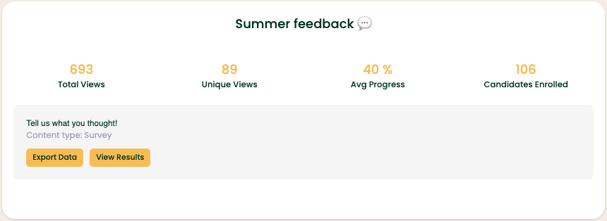 - Surveys: from the Step view, you can quickly export the results or jump to the Survey Results section (see below for more information)